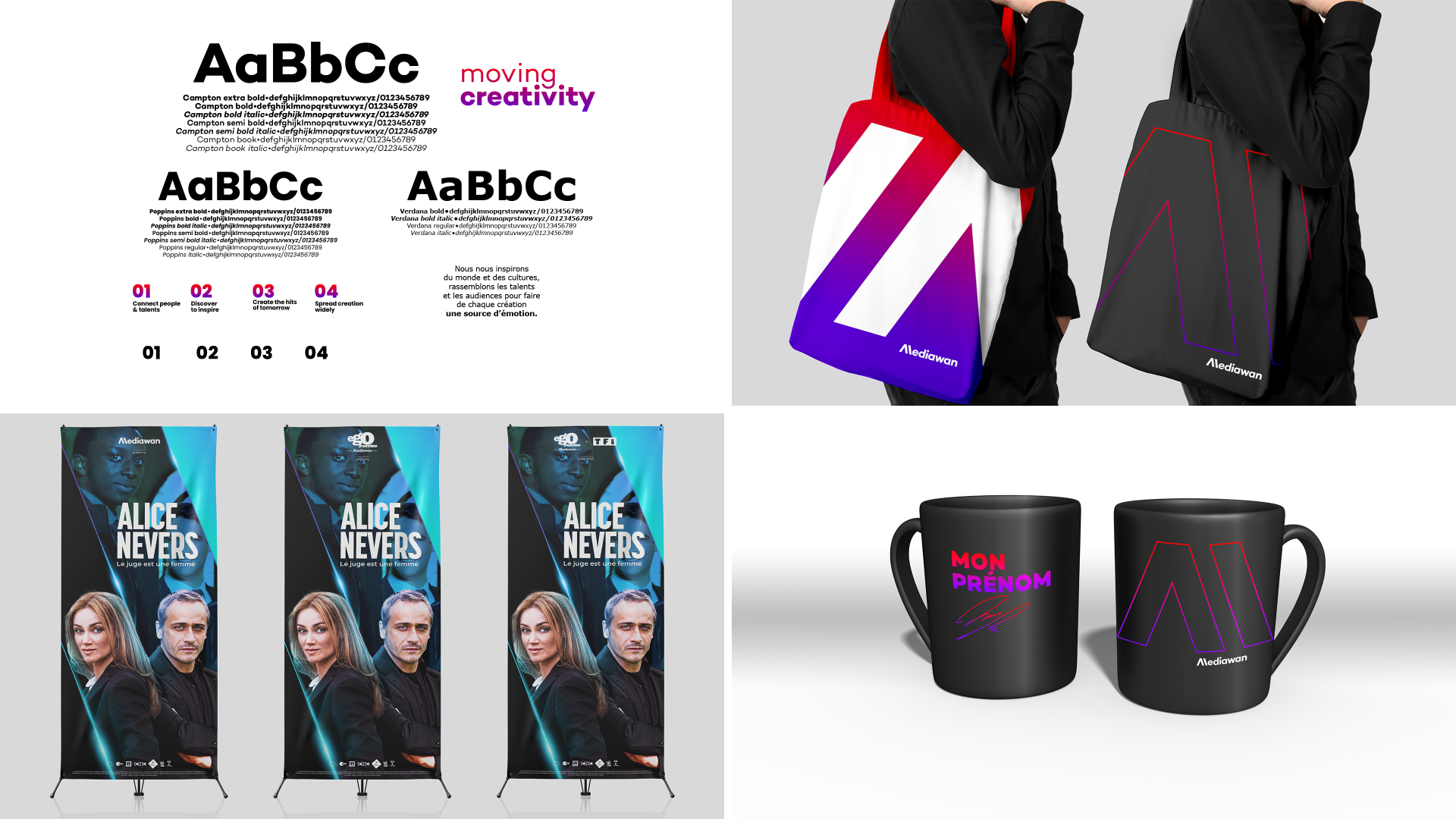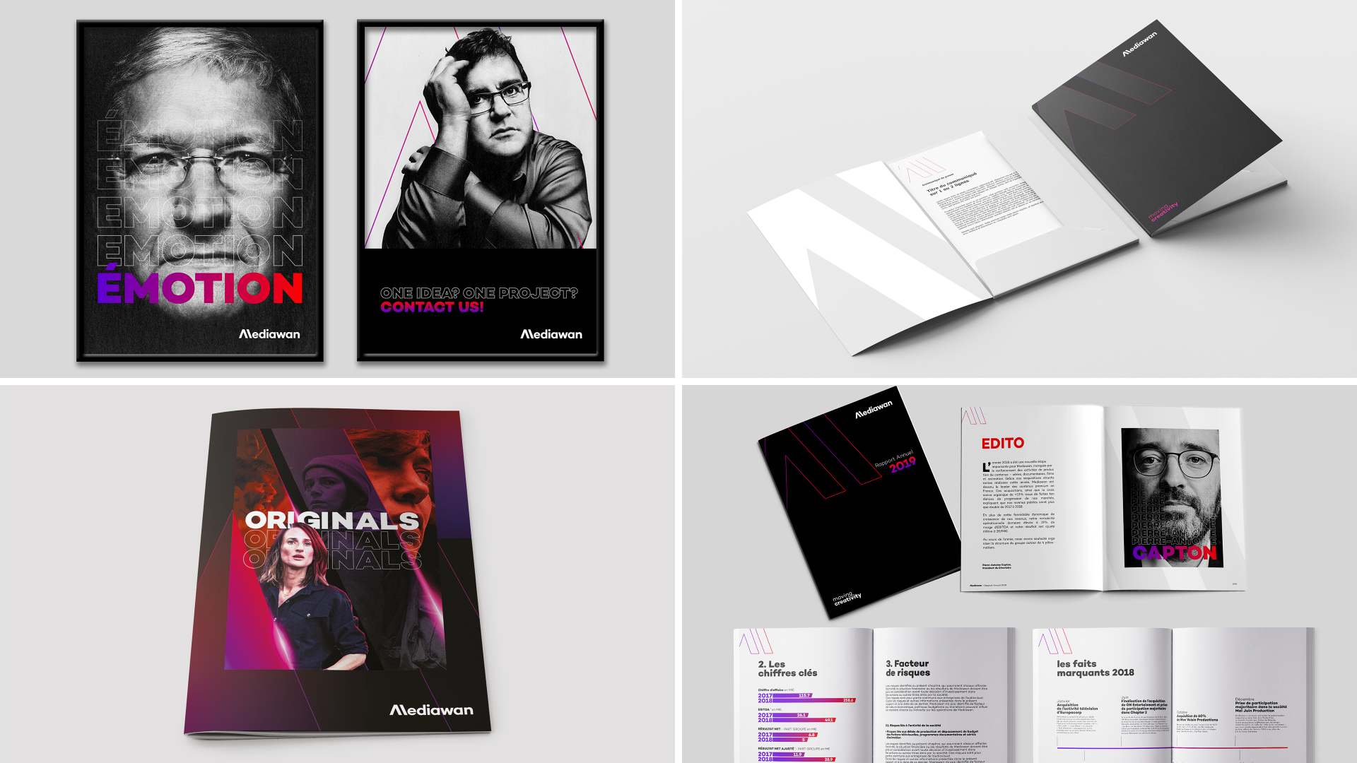 Pour Mediawan, un logotype et un territoire graphique capables d’incarner la créativité et la diversité des sociétés composant le groupe.